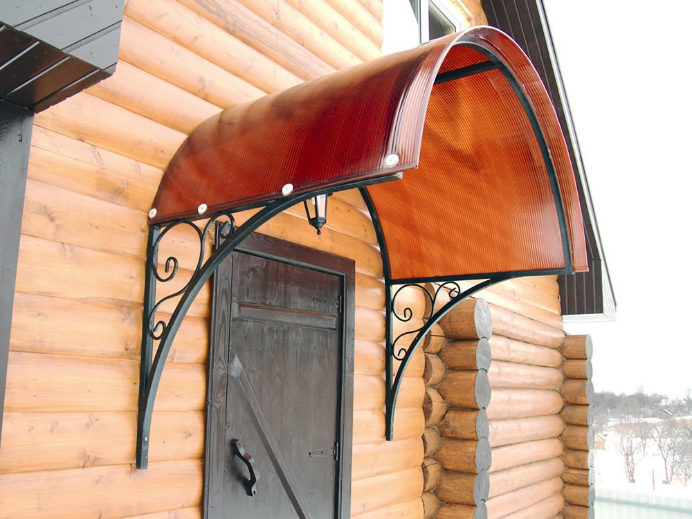 Оцените статью: Поделитесь с друзьями!Козырек над входом из поликарбоната — виды и чертежи (фото, видео)