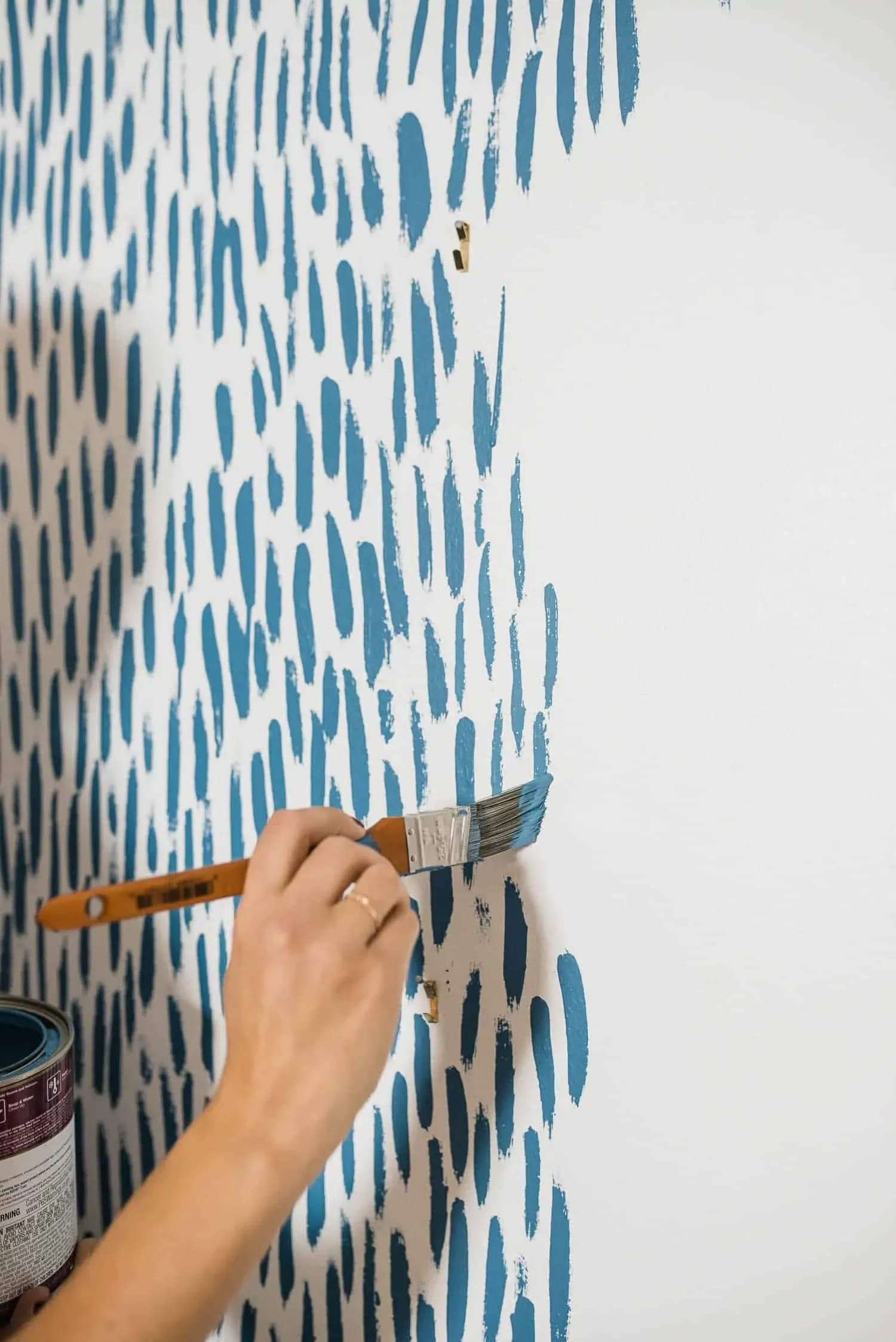 Ссылайтесь на свой узор и нарисуйте его прямо на стене! Для этого шага я использовал маленькую кисть, чтобы потом было меньше карандаша. Я сделал несколько ошибок по пути, но просто закрасил базовым цветом. Это действительно очень щадящий процесс, и самое приятное в нем то, что несовершенства на самом деле добавляют так много характера — это показывает, что вы на самом деле нарисовали это на стене вручную!