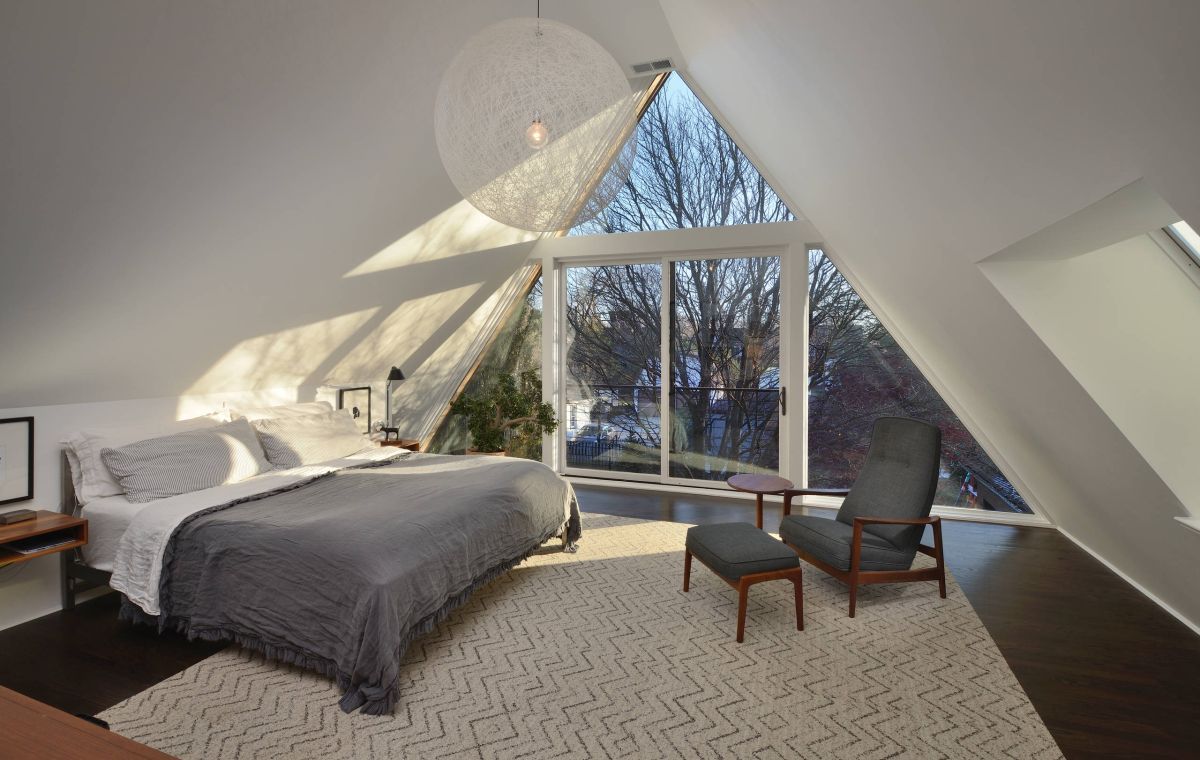 Хороший вид делает утро особенным и идеальным для уединения. Создайте детскую спальнюДетям нравятся формы и узоры, а чердак в вашем доме дает вам возможность разместить и то, и другое в их комнате. Яркие обои на мансардной крыше делают эту спальню красочной. Посмотрите, как замечательно использован каждый уголок комнаты, чтобы сделать эту спальню супер функциональной?