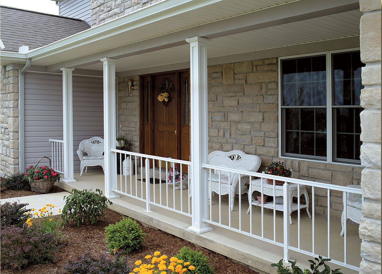 Так при оформлении крыльца брусчатого либо обычного деревенского дома из дерева необходимо использовать поручни из дерева, а вот поручни из пластика рекомендуется использовать при оформлении крыльца современного загородного дома изготовленного из бетона либо кирпича.