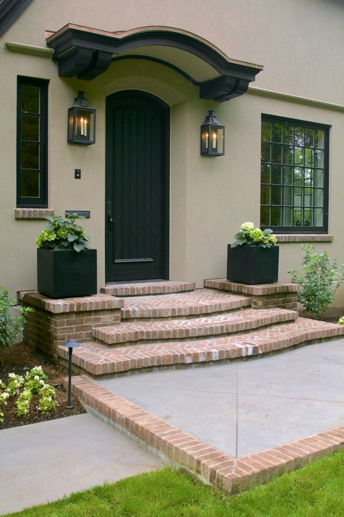 Кирпичное крыльцо будет более дорогим, но также очень привлекательным и надежным решением для частного дома. Его установка займет довольно много времени и труда, однако в долгосрочной перспективе это полностью окупится за счёт его неприхотливости в уходе.