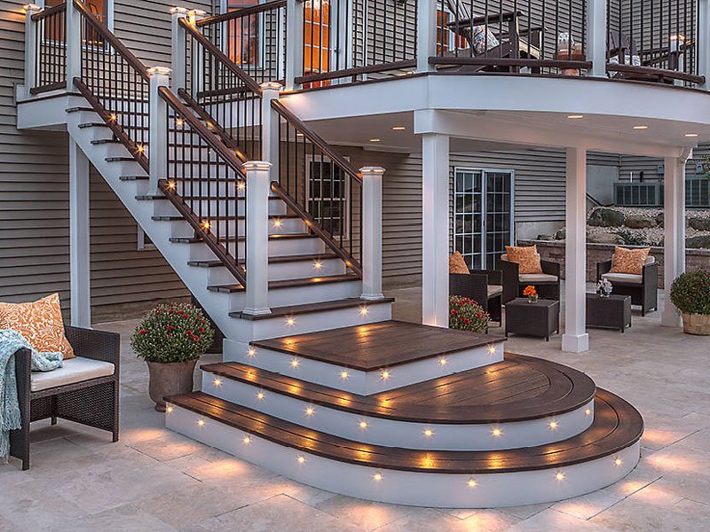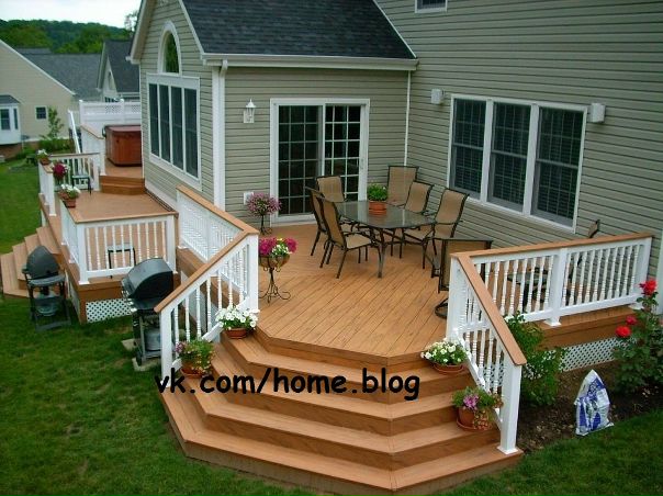 Так обычное крыльцо может иметь вид небольшой лестницы имеющей всего несколько ступенек, как правило, они устанавливаются непосредственно перед входом в дом. Однако, бывают варианты когда крыльцо опоясывается вокруг веранды, либо опоясывается вокруг террасы.