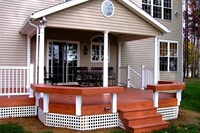 А вот крыльцо дачного дома изготовленного из дерева, может иметь большой выбор декоративного оформления. Но, многие владельцы таких домов стараются подчеркнуть значимость материала из какого сделано крыльцо. Для этого, деревянное крыльцо обрабатывают специальным масляным составом.