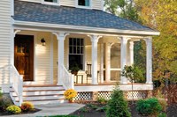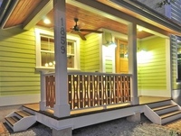 Размеры и форма крыльца к дому, как правило, диктуются архитектурными особенностями и размерами самого здания, а также личными предпочтениями его хозяев. В частности, дизайнеры сходятся во мнении, что навес и перила крыльца должны выполняться в том же стиле, что крыша и балконы частного дома. Например, если крыша дома двускатная — навес над крыльцом должен быть таким же. А если вы заказали кованые балконы или решетки на окна, то заодно побеспокойтесь и о перилах — чтобы они имели те же узоры ковки. Аналогично следует подбирать дизайн колонн, арок и прочих элементов декора.