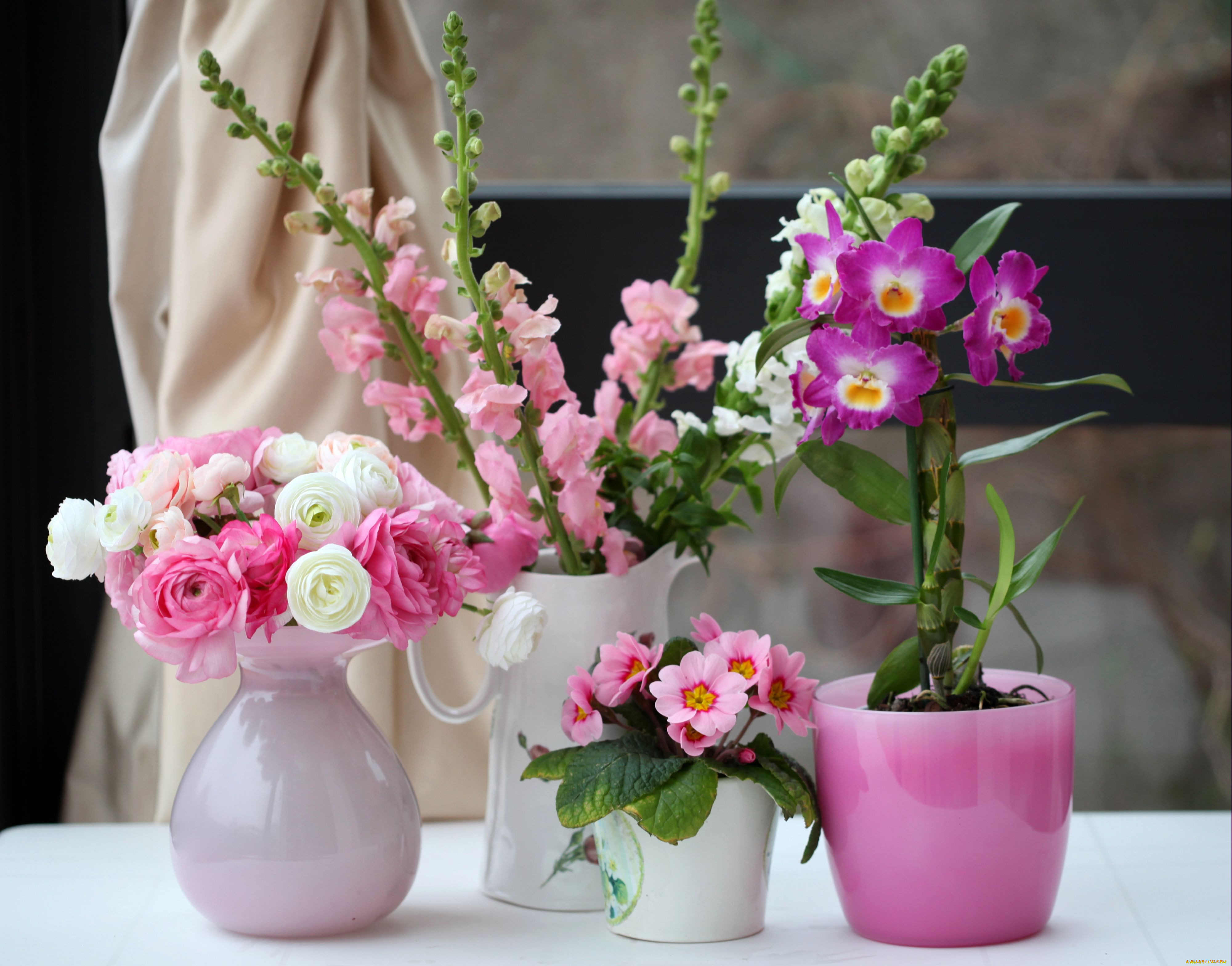 Ну а если вы хотите продлить жизнь вашего букета, тогда при его составлении учтите благотворное влияние таких растений, как герань или ветки цветущего жасмина, а также туи или кипариса, которые способствуют очищению воды в вазе.