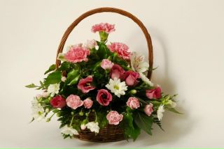 Растения вставлены в специальную флористическую губку, которая надежна прикреплена к корзине или чаше. Благодаря этому цветы дольше остаются свежими. Не забывайте почаще поливать свою композицию, что бы она могла радовать Вас гораздо дольше.
