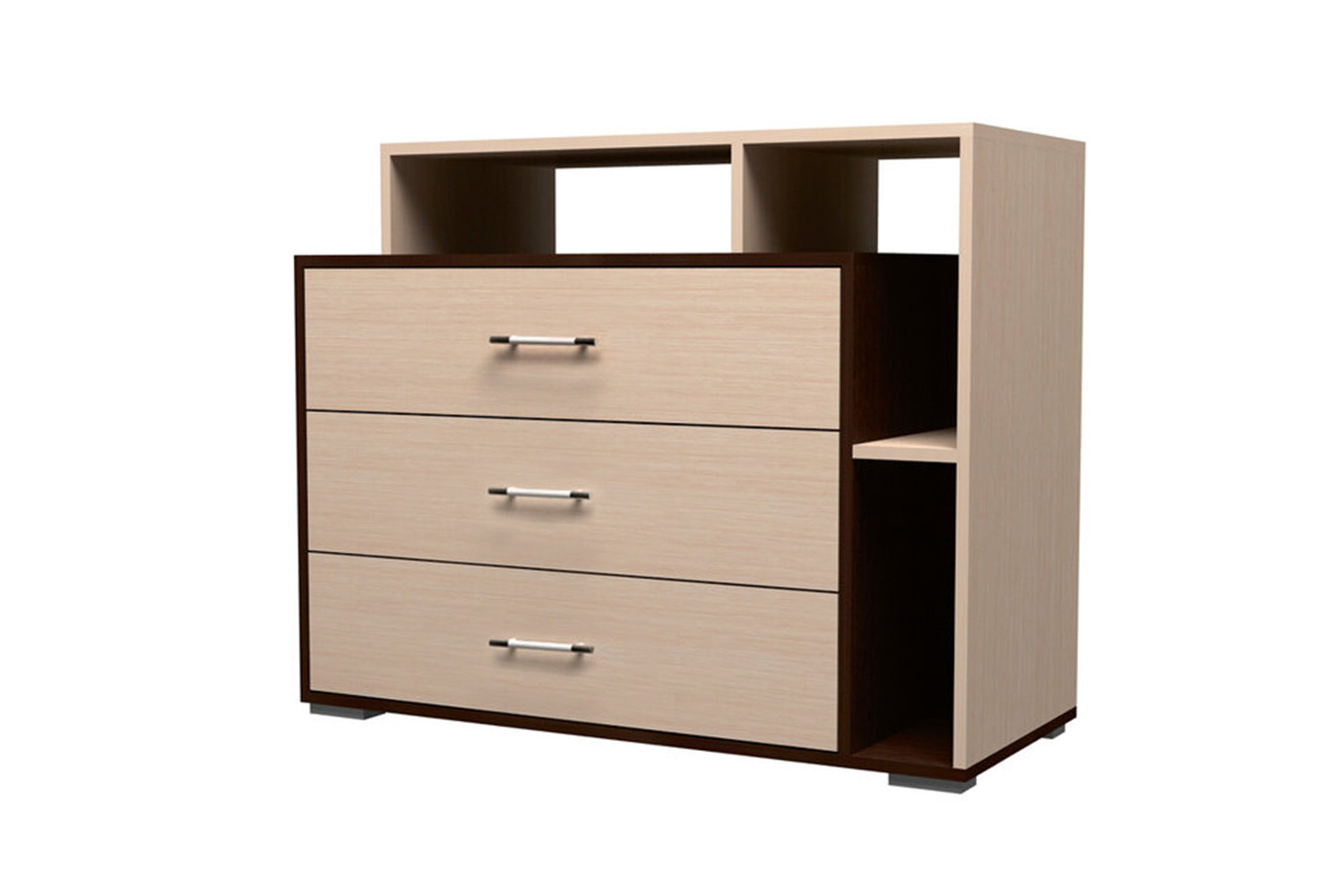 Бежевый цвет можно считать нейтральным. Вряд ли он когда-нибудь вам надоест, поэтому выбирая бежевый цвет, вы не прогадаете. Бежевый хорошо сочетается с коричневым, фиолетовым, синим, розовым. Мебель светлых цветов непременно будет радовать глаз. Слишком темный комод в комнате, выполненной в светлых тонах, будет смотреться несколько громоздко. Оптимальным вариантом будет двухцветная модель, сочетающая два разных материала.