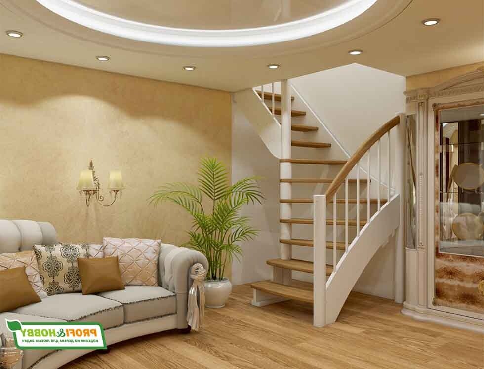 Деревянная винтовая лестница в гостиной