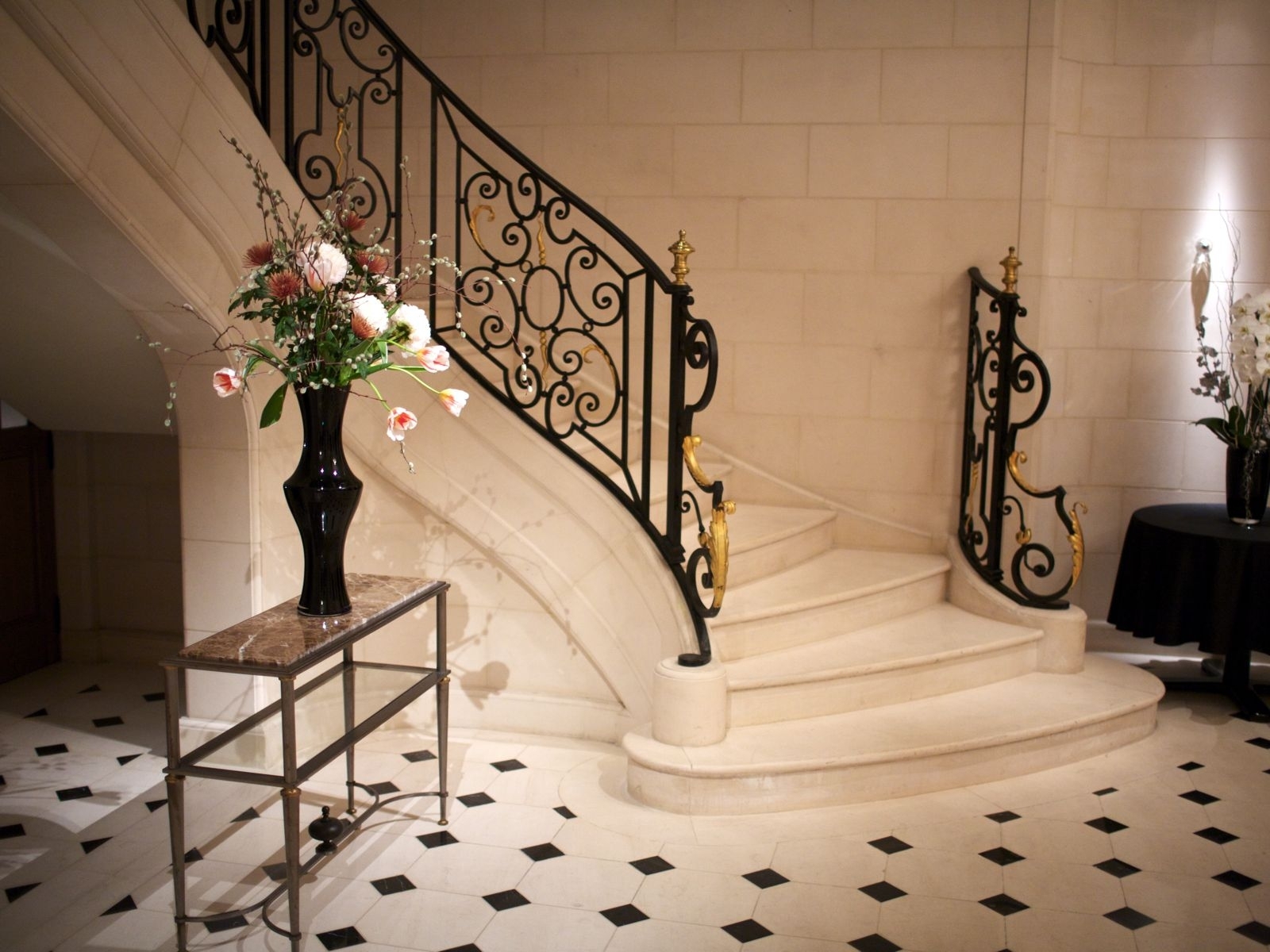 Пышный букет цветов украсит интерьер прихожей с лестницей
