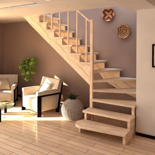 Идеальный наклон марша составляет 45 градусов. Учитывая биомеханику движения, количество ступеней выполняют от трех до пятнадцати. Если высота потолков не позволяет уложиться в этот предел, делается два или даже три марша.