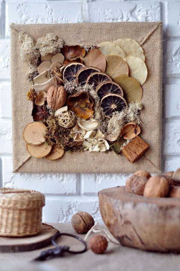 Для таких композиций применяют самые различные продукты, например крупу, кофейные зерна, сушеные фрукты или овощи, специи и многое другое. Данный декор является особенно актуальным для кухонного пространства.