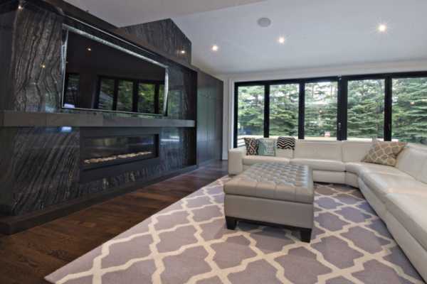 Оформление с досконально продуманной тематикой, идеальными геометрическими формами и прямыми линиями, станет отличным вариантом для многоликого и логичного современного дизайна. Мраморные, стеклянные, пластиковые элементы или лакированные плоскости считаются актуальным и выигрышным решением.