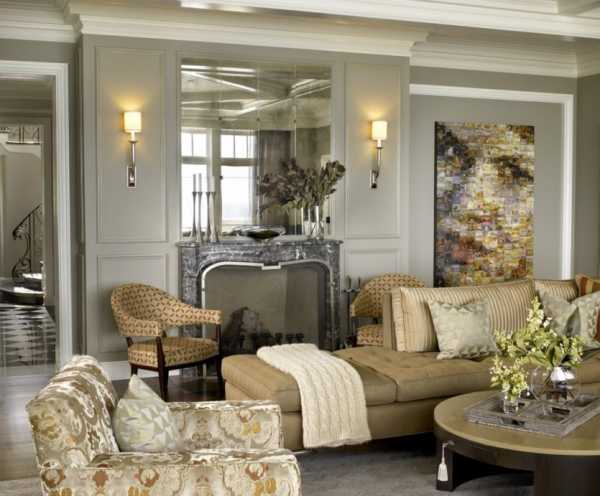 Классическое направление предполагает отблеск роскоши в любом элементе интерьера. В то же время, присутствует аристократическая сдержанность. Например, зеркальное панно на стену. Современные технологии позволяют создать на зеркалах множество эффектов, включая искусственные «вековые» потертости, что придаст полотну особо ценный вид. Рамки картин, композиций хорошо оформить из фигурных багетов, имеющий рельефные рисунки.