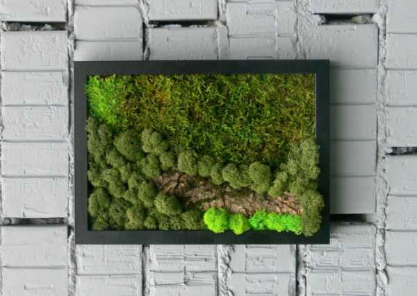 Мшистые украшения представляют собой вечнозеленую красивую картину, несомненно становящуюся истинной интерьерной находкой.