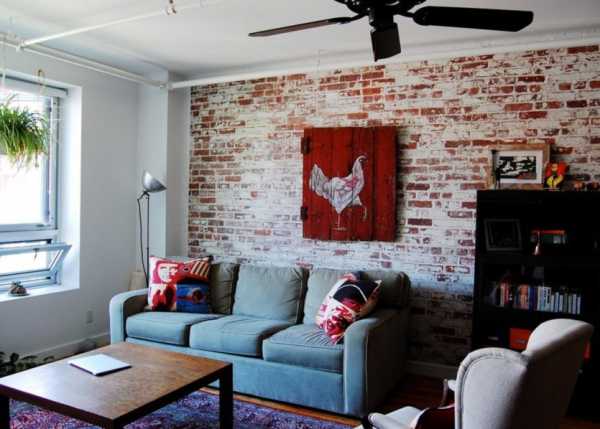 Стильный лофт резко выделяется на фоне других направлений — не узнать его просто невозможно. Кирпичные стены, голый бетон интерьера требуют дополнительных деталей декора, которые придадут вид «обжитости». Чтобы оформить панно на стену лофт, часто используют большие метровые полотна (часто деревянные) с различными изображениями: социальными постерами, символикой, работами современных художников, черно-белыми фотографиями. На снимке показано удачное оформление панно на стену из деревянного поддона.