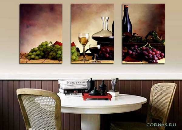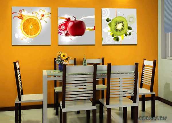 - Еда. Декор с данной тематикой чудесным образом украшает помещение и делает его намного уютнее и красивее.
