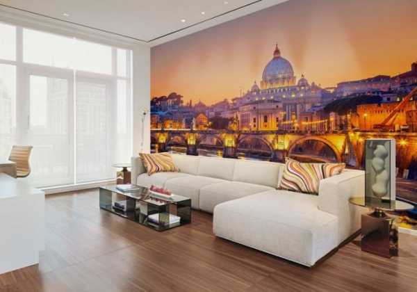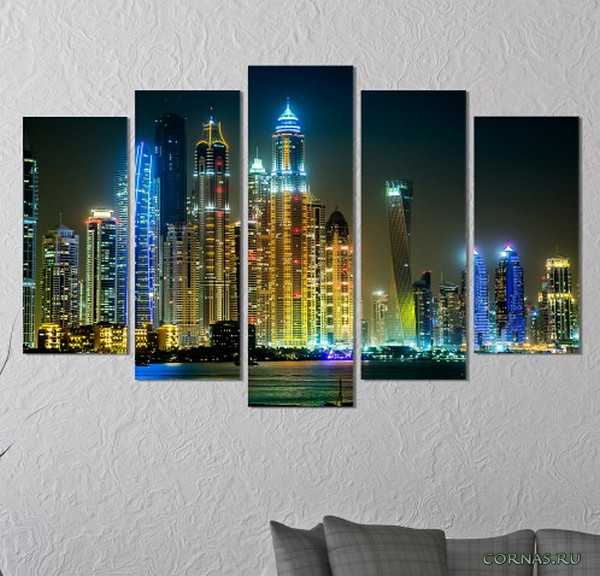 - Города. Панно с современными мегаполисами, высокими зданиями, небоскребами или тихими городскими пейзажами, всегда выглядят очень эффектно и уместно.