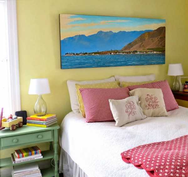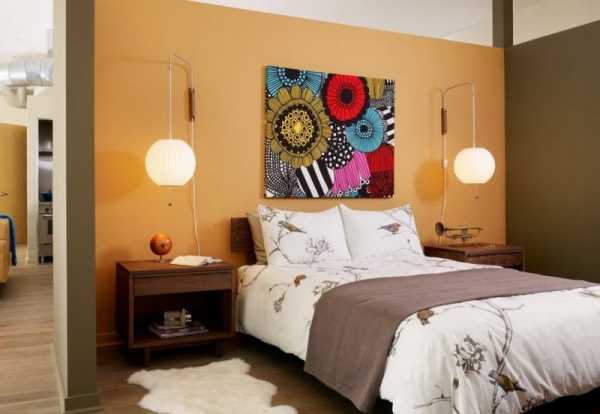 Если же вы остановились на ярких стенах в спальне, то панно должно быть светлее, но уместно в той же палитре.