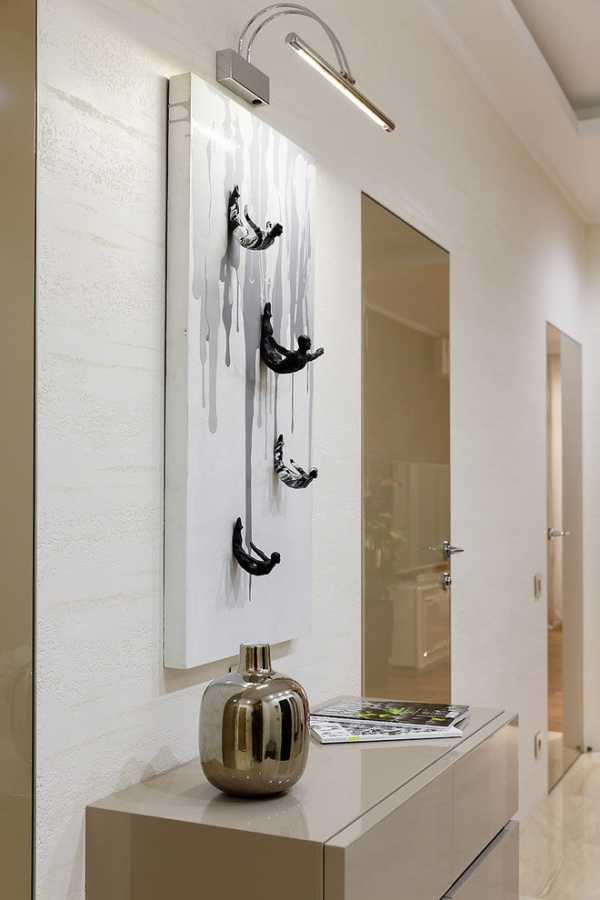Спокойные тона помещения помогают сформировать основу, в которой будет размещаться панно. Оно может быть броским, а может легко и органично сочетаться с прочим окружением.