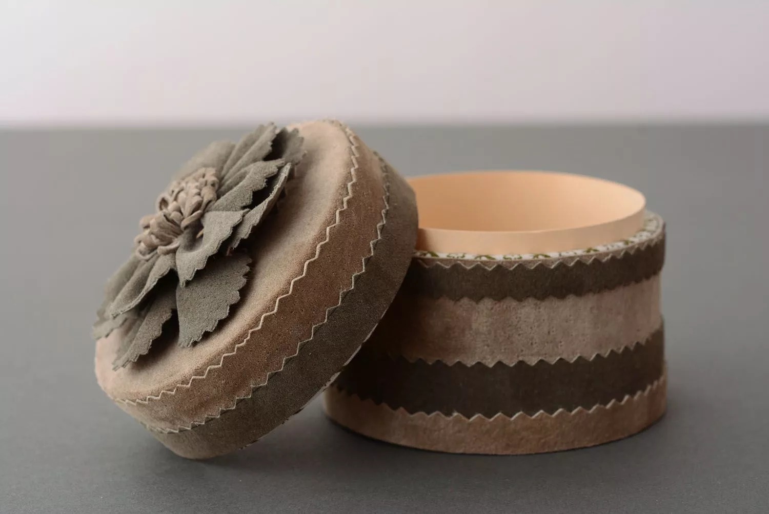 - Сначала проводятся точные замеры шкатулки. Далее осуществляется выкройка материала;