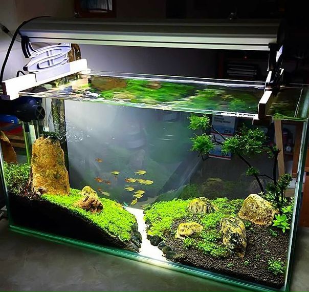 Что касается природного аквариума, то его главная особенность заключается в густо рассаженной растительности. Чтобы создать акваскейп, понадобится изучать жизнь подводных растений. Водоросли необходимо подкармливать, кроме того, важно правильно применять систему CO2.