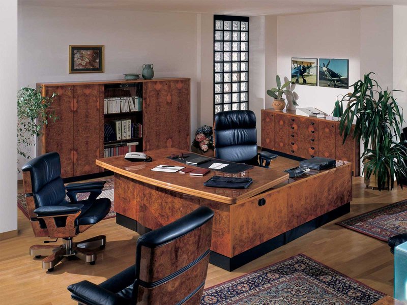 Потоковые посетители фирмы могут ознакомиться только со стилем приемной, и лишь деловые партнеры попадают в обитель директора. Оформление кабинета руководителя, на которое они непременно обратят свой взор, в этом случае играет значительную роль. Продуманной и уместной должна быть каждая мелочь, каждый штрих. Размещенная мебель не просто обязана быть практичной, но и передавать статусность ее хозяина.
