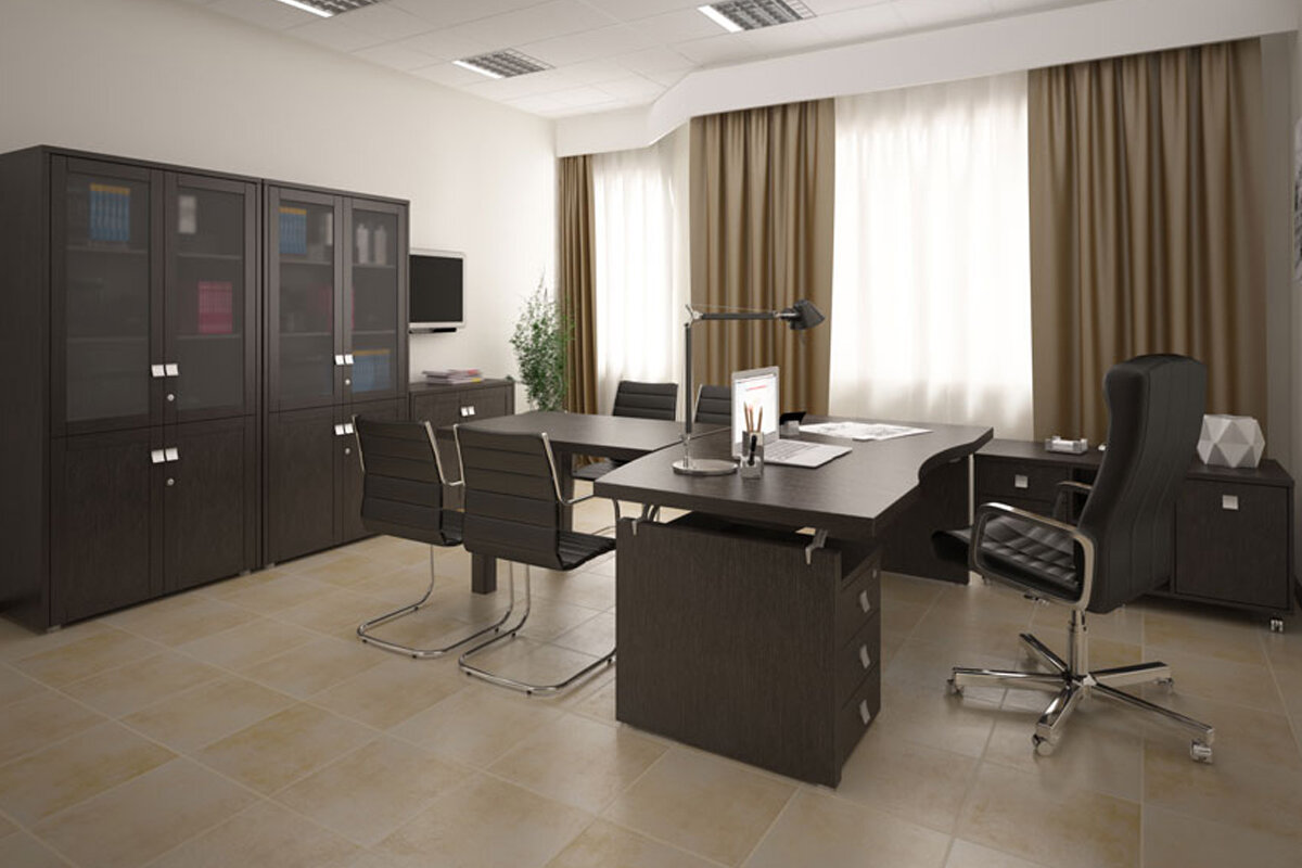 Присутствие в кабинете начальника должно быть приятным также для деловых партнеров, коллег и гостей организации. Тем более, если офис не может себе позволить выделить отдельное помещение для переговорной. Поэтому кабинета топ-менеджера должен отвечать стандартам проведения переговорного процесса – в нем должно быть достаточно свободного пространства, стоять удобный стол с определенным количеством стульев.