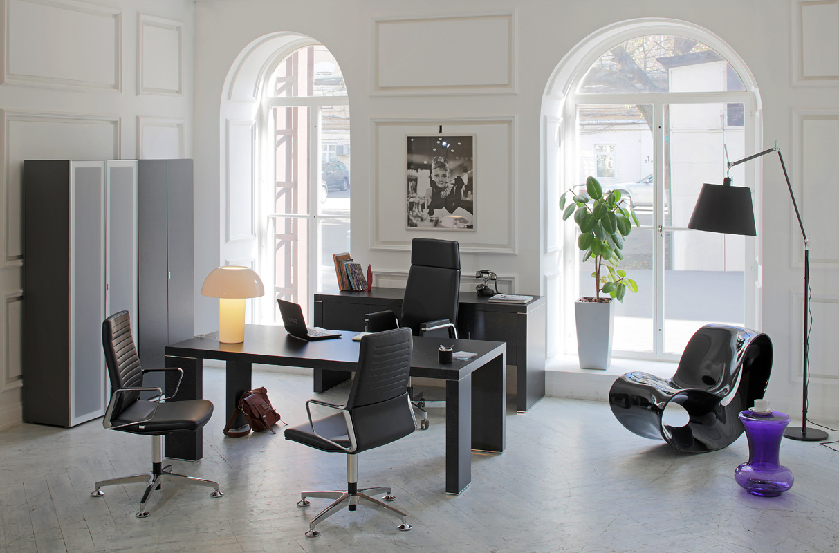 В кабинете топ-менеджера обычно проводятся совещания, решаются текущие проблемы и даже, при отсутствии переговорной, ведутся ответственные переговоры. Элементы интерьера дизайна кабинета руководителя должны не просто взаимно соответствовать друг другу, но и оказывать позитивное впечатление на деловых партнеров и клиентов компании.