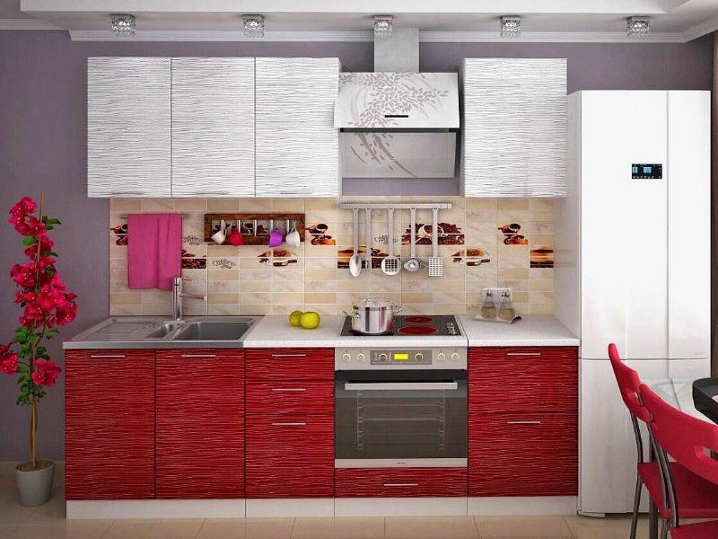 Сочетание красного с белым в интерьере кухни придает пикантность даже самому простому гарнитуру