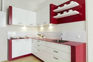 Изысканным украшением многих стилевых направлений может стать кухня в бело-красных оттенках.