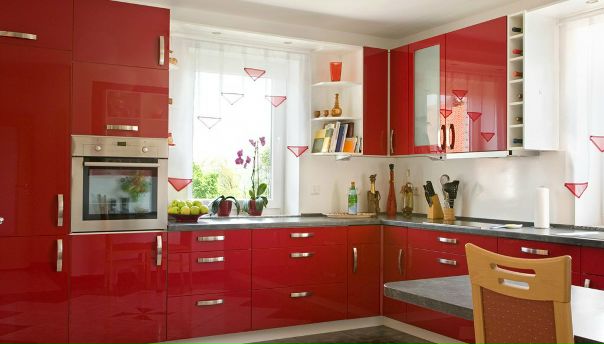 Выбрав для кухни ярко-красный гарнитур, разбавьте интенсивность цвета отделкой стен, фартука и пола в оттенки белого. И, наоборот, выкрасив стены в красный, используйте мебель белого цвета. Несколько приглушить излишнюю яркость красного цвета можно и за счет темных акцентов черного или коричневого цвета. Прекрасно уравновешивают контрастные цвета серый и серебристый.