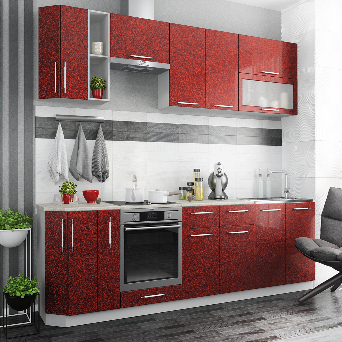 Красно-белая кухня поражает своей элегантностью и изысканностью