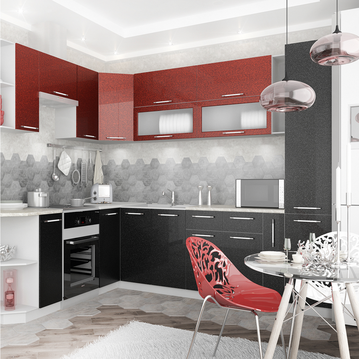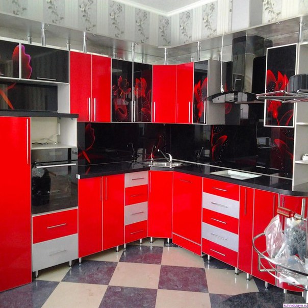 Красно черный кухонный гарнитур: 50 фото готовых дизайн-проектов, гарнитур в интерьере, оформление интерьера