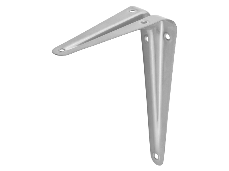 При установке полок на кронштейн, крепления становятся видимыми, поэтому следует отнестись к выбору кронштейна, как к элементу декорации интерьера помещения. Вариантов декоративных полкодержателей на рынке множество. Материалы, из которых сделаны кронштейны, тоже разные. Поверхность может быть обработана гальваническим методом или просто краской.