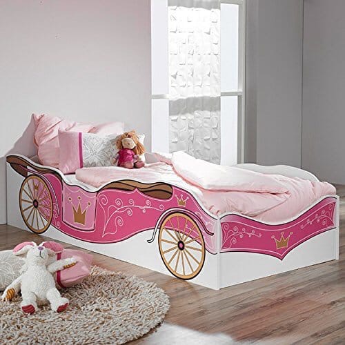Современные производители предлагают нам множество вариантов исполнения кроватей для девочек. Например, она может быть выполнена в форме настоящей кареты и при соответствующем оформлении интерьера, комната будет похожа на дворец. Кроме того, такая кровать станет удобной не только для сна, но и для ролевых игр.