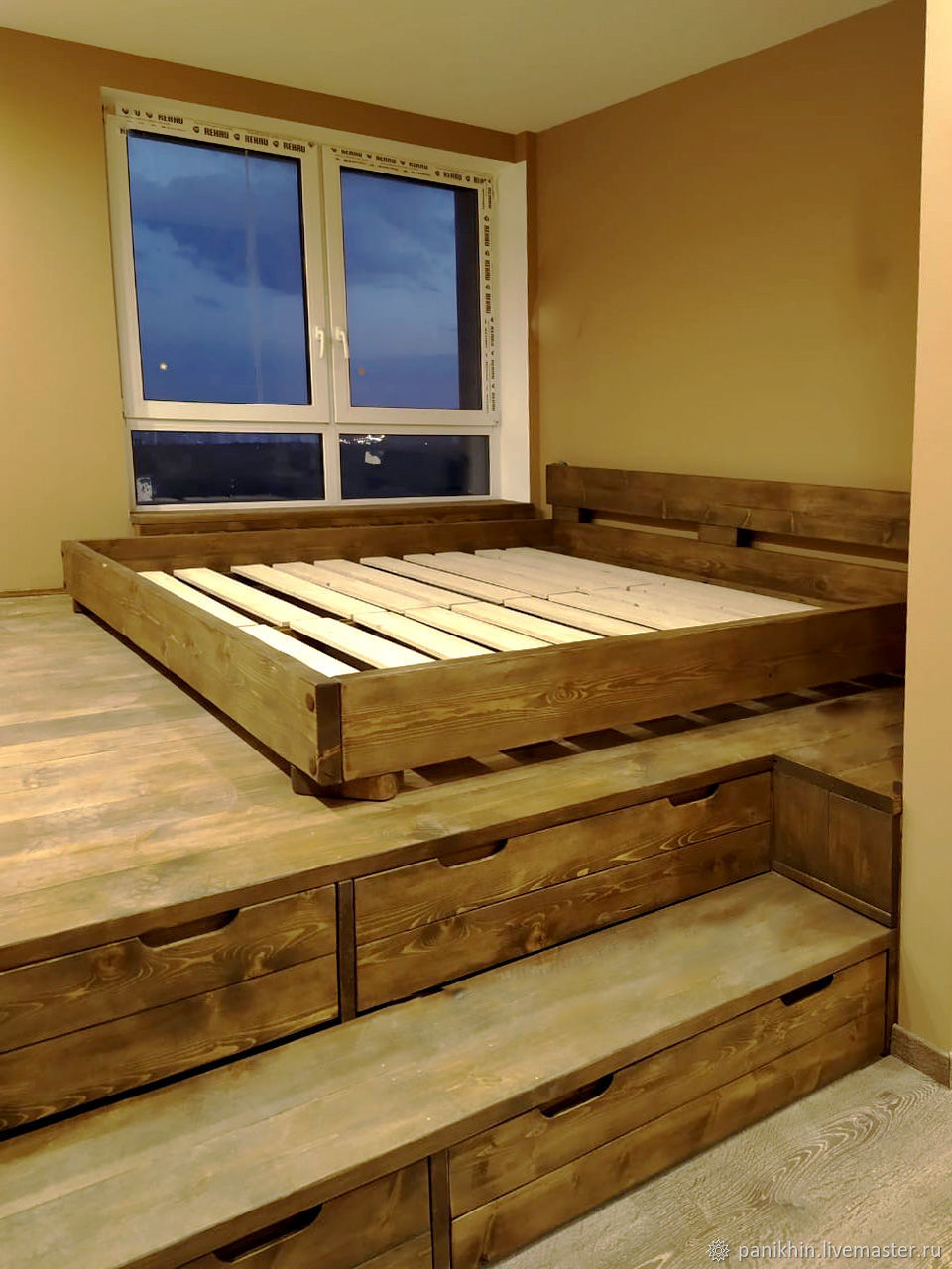 Идеальным материалом для изготовления кровати-подиума с ящиками является массив дерева.