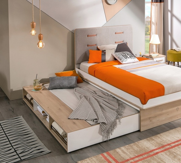 Это достаточно распространенный тип установки. Кровати устанавливаются на выдвижное основание. В любой момент их можно убрать, чтобы освободить место в комнате. Такое решение распространено в небольших квартирах и частных домах.