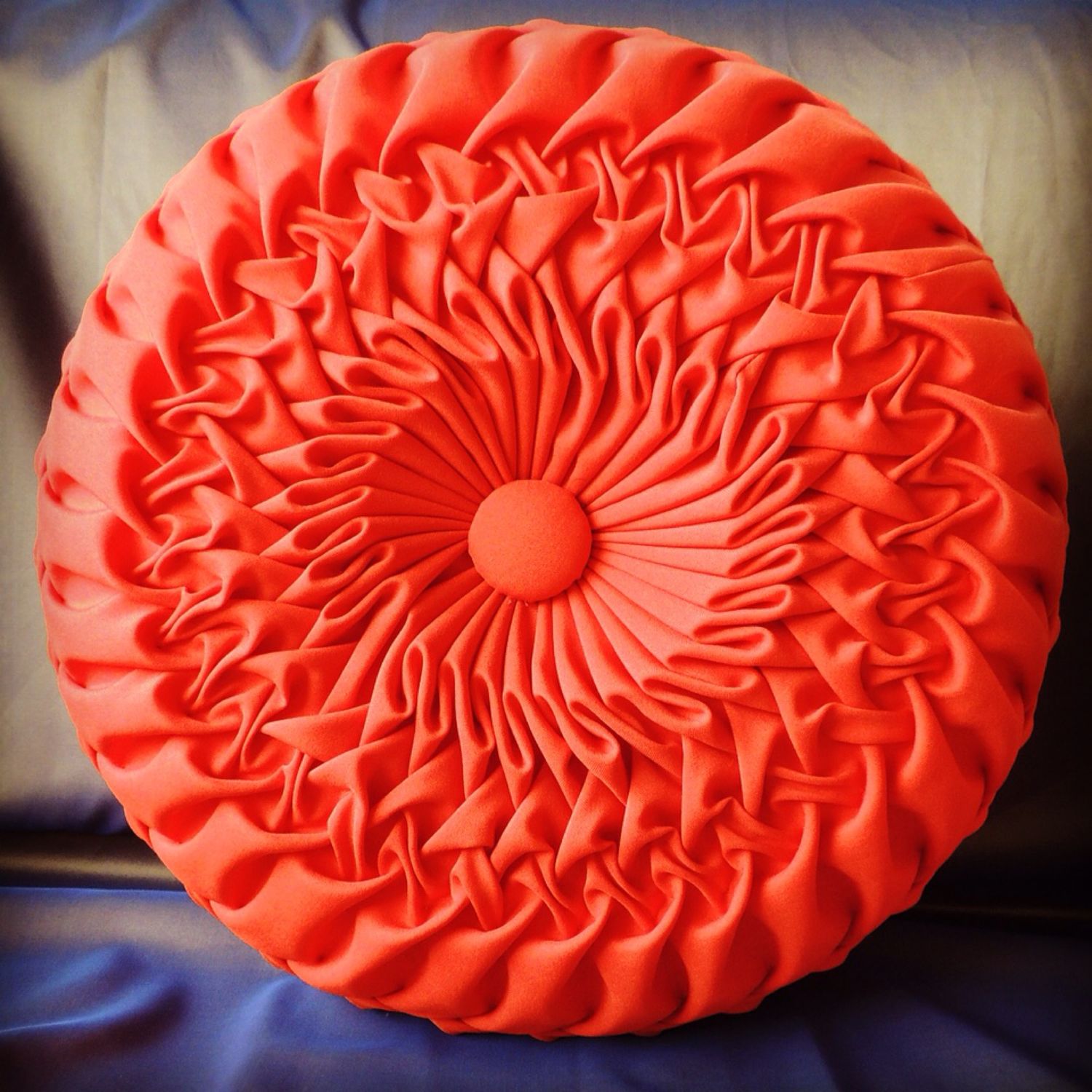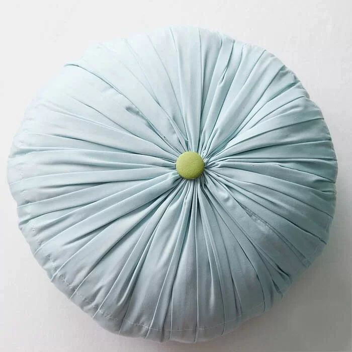 Теперь вы знаете, как сшить круглую подушку с пуговицей по центру. Ткань для пошива желательно брать тонкую и эластичную, иначе складки будут смотреться грубо.