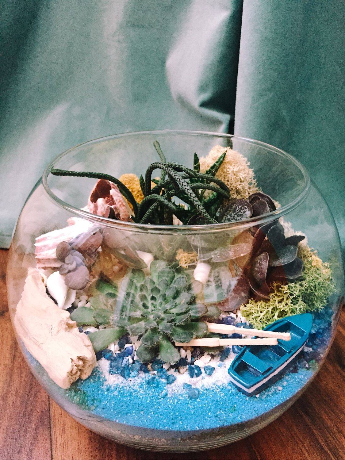 Для композиции «Морское дно» подойдут и другие флорариамы обтекаемой формы.