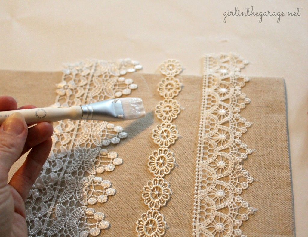 Разложите кружево и с помощью кисточки нанесите обильное количество средства для придания жесткости ткани Stiffy.