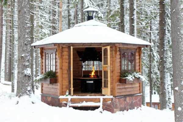 Зимняя беседка с мангалом, фотоСовременные беседки каждого типа представлены разнообразными формами. Вы можете остановиться на простых конструкциях или выбрать нестандартные варианты, которые только украсят ваш участок.