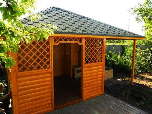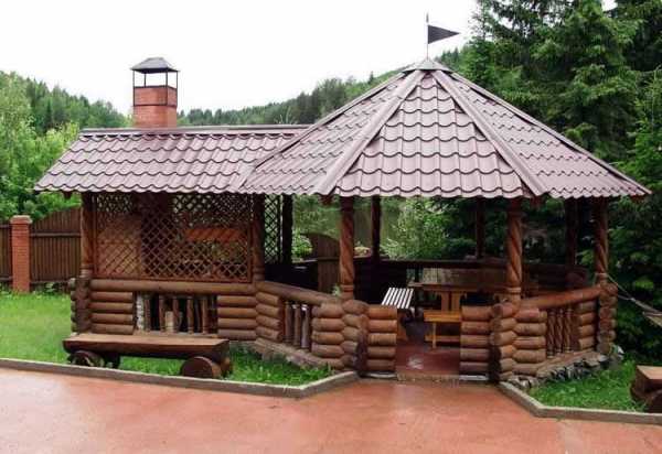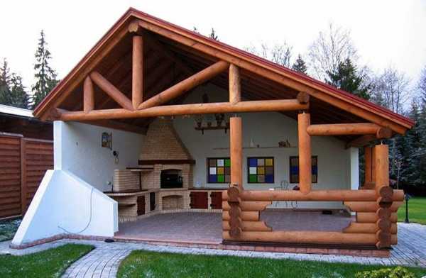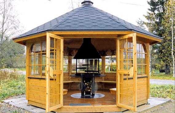 Древесина также имеет разновидности, поэтому проектов воспроизведения закрытых беседок с мангалом или барбекю довольно много: