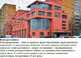 Конструктивистское направление получило широкое применение в советской архитектуре 20-30-х годов прошлого столетия.