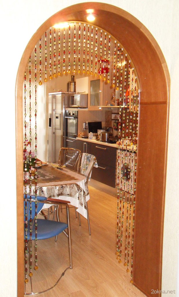 Именно такие изделия помогут вам правильно провести зонирование. В хрущёвке лучше устанавливать небольшие и невысокие арки, поскольку чаще всего в таких квартирах переход с кухни ведёт в коридор, который является довольно узким. Роскошные высокие модели подходят только для отделки современных квартир и просторных домов с высокими потолками.