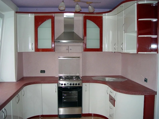 Органично вписываясь в скромную площадь, маленький кухонный гарнитур для хрущевки способен на все 100% выполнить свои функции, разместив под рукой самую необходимую кухонную утварь. Дополнительные сантиметры угла гарнитура позволят хозяину установить стиральную или посудомоечную машинку. Угловой шкафчик очень практичная вещь. У него глубокие полки, крепко закрепленные за стенку в нескольких точках, которые легко выдержат пару-тройку килограммов запасов провизии. В некоторых случаях, для подогрева воды в квартире используется колонка, которая располагается в кухне.