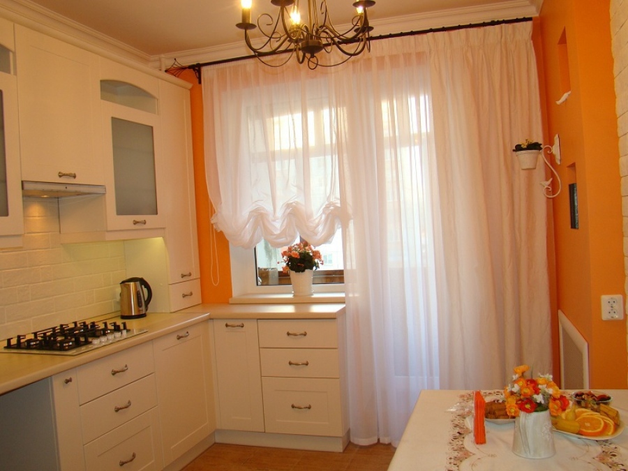 Даже при одинаковых конструкциях и способах крепления кухонные шторы могут выглядеть совершенно оригинально в интерьере разных стилей. Актёры из занавесей разных конструкций позволяет сделать выход на балкон.