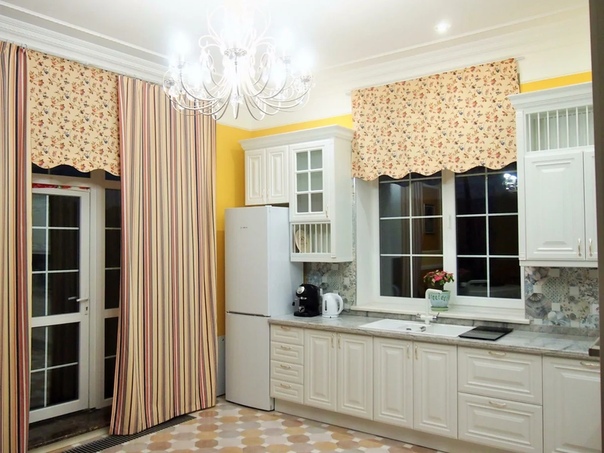 Ламбрекены (узкая горизонтальная полоска шторы на всю длину окна) годятся только для некоторых стилей. Например, для кухни в стиле прованс.