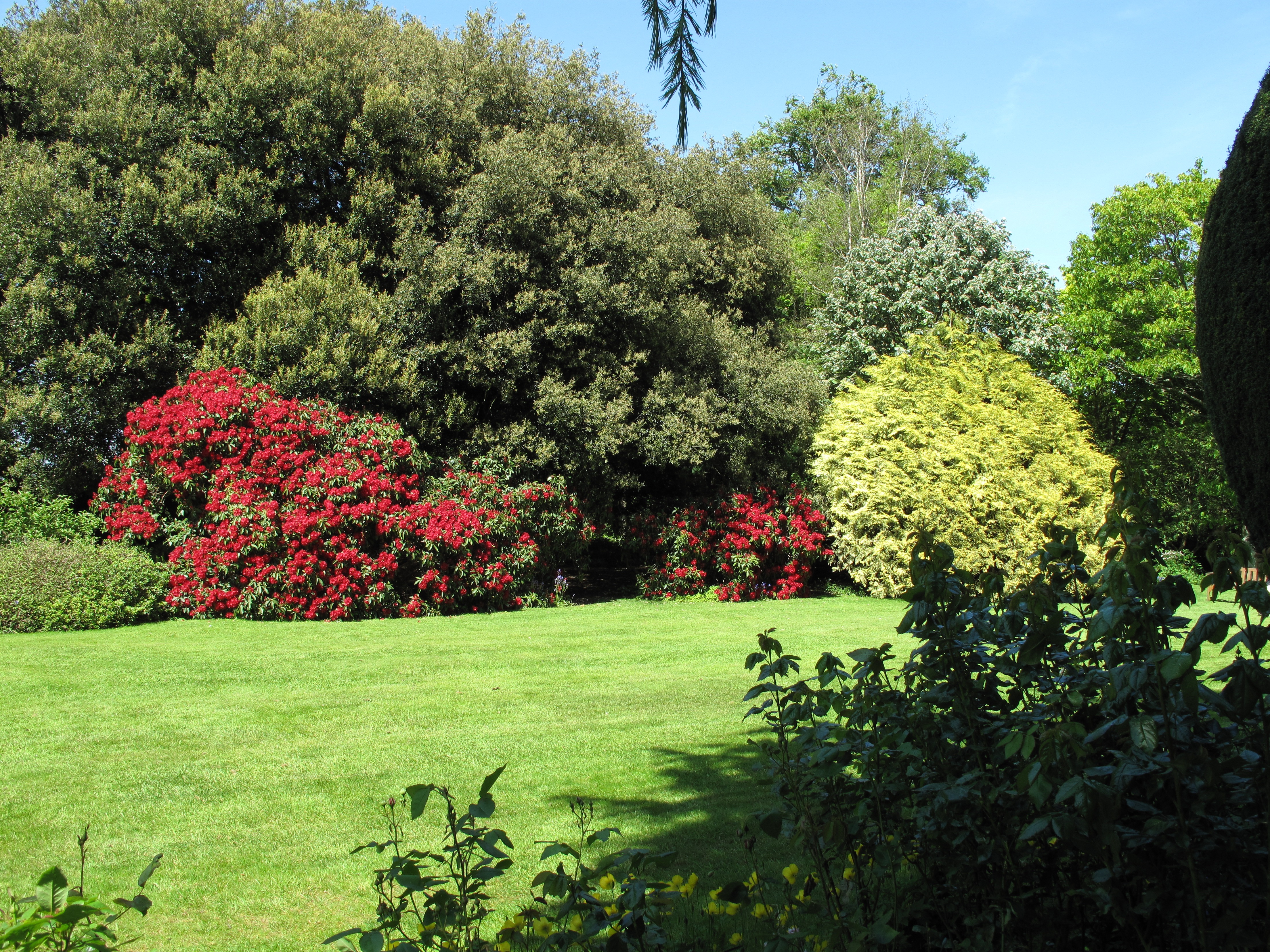 Лето открывается цветением рододендронов, древовидных пионов, чубушника. Особенное настроение создают в саду кусты лапчатки, усеянные желтыми, красными или оранжевыми цветочками.