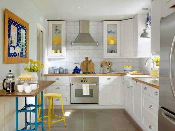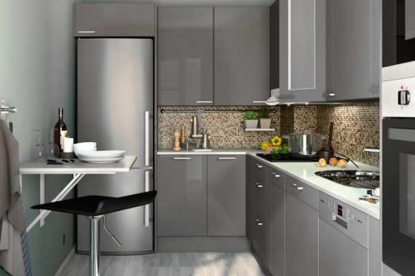 Маленькая кухня ограничивает ширину столешницы. Она не должна превышать 40-60 см, иначе перемещение по комнате будет затруднено, что приведет к неудобству.