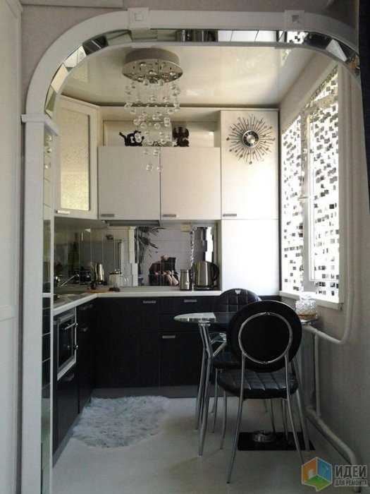 Имеющийся балкон или лоджия также могут быть задействованы, и помогут увеличить полезную площадь. На балконе можно установить тот же холодильник, варочную поверхность, а подоконник между балконом и кухней может превратиться в разделочную поверхность или обеденный столик.